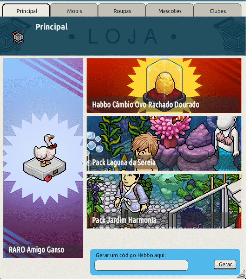 Nesta sexta-feira (17/01), o Habbo disponibilizou o novo raro Amigo Ganso. Ele pode ser adquirido através da loja do hotel por 40 câmbios + 40 diamantes. Contém um emblema exclusivo. Confira outras informações:
