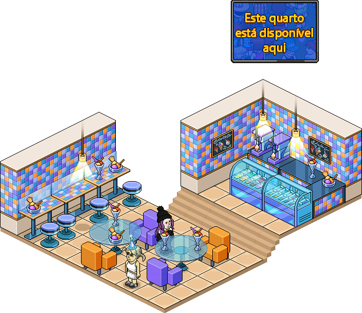 Nesta quarta-feira (26/02), o Pack Pack Sorveteria foi disponibilizado no hotel novamente. Ele pode ser adquirido através da loja do hotel por 99 câmbios, 45 câmbios + 45 diamantes ou por R$ 24,99 na HabboShop. Contém um emblema exclusivo! Confira mais informações: