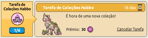 Ative a Tarefa de Coleções Habbo antes de comprar o item no catálogo para conseguir o item bónus Cadeado Cisne após a compra dos 6 itens colecionáveis. Lembrando que se cancelar a tarefa, o seu progresso irá resetar!
