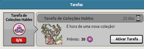 Ative a Tarefa de Coleções Habbo antes de comprar o item no catálogo para conseguir o item bónus Cadeado Cisne após a compra dos 6 itens colecionáveis. Lembrando que se cancelar a tarefa, o seu progresso irá resetar!